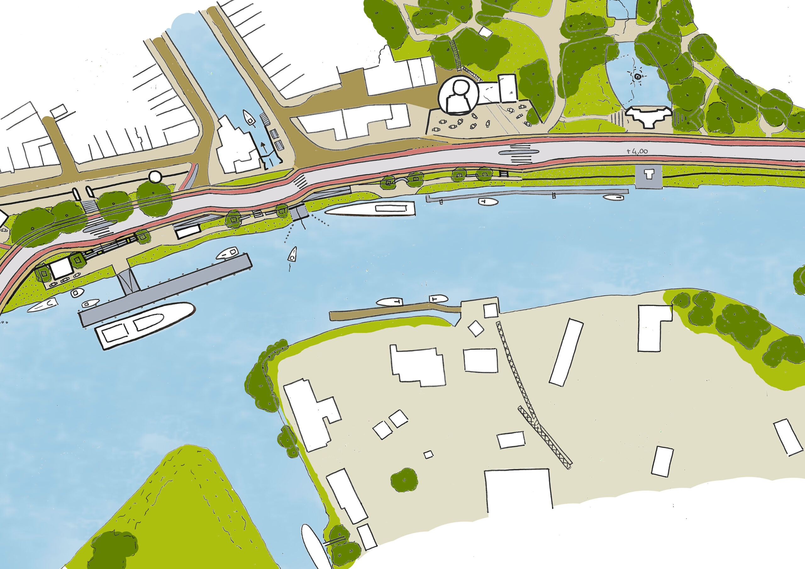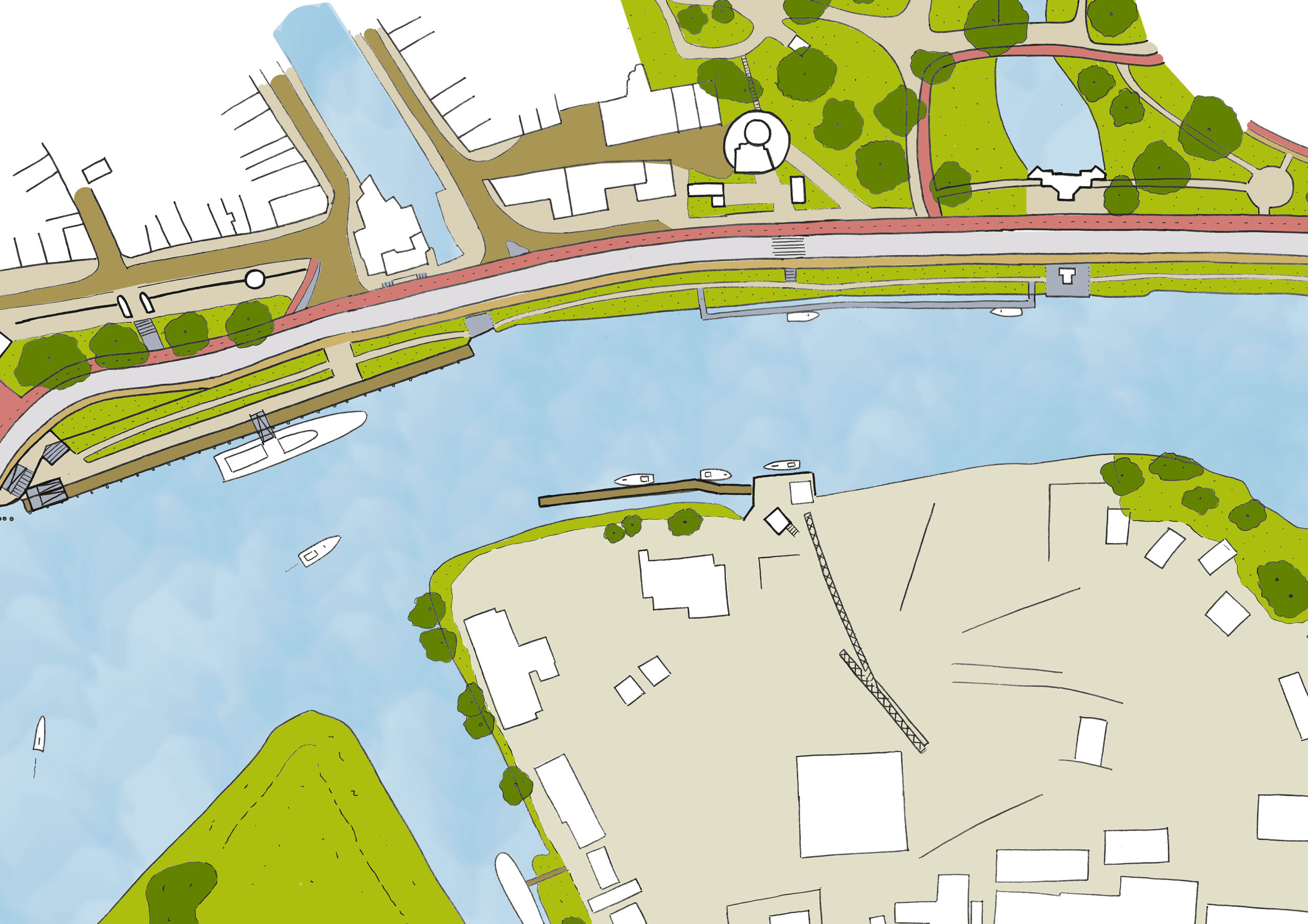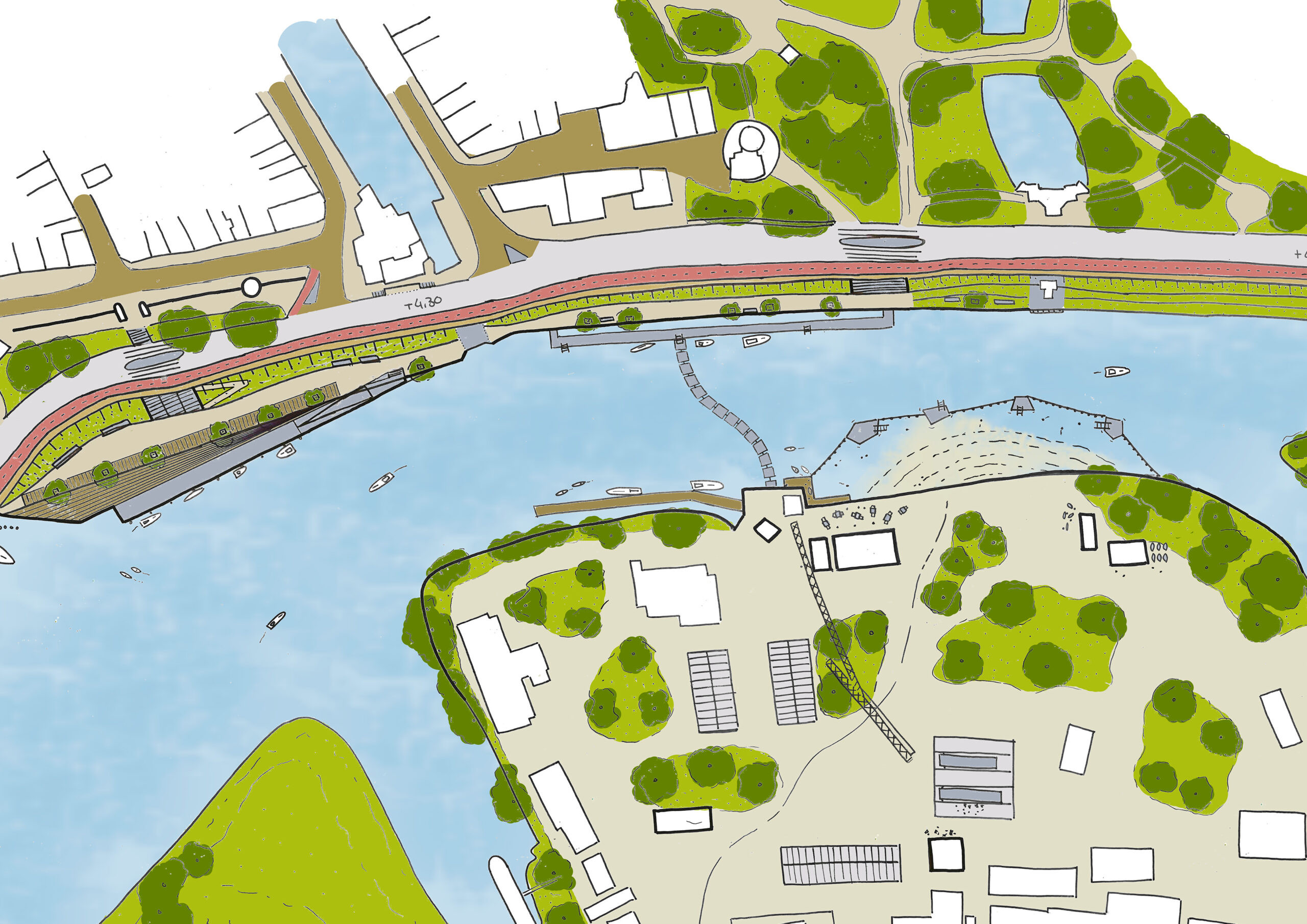 De Nieuwe Veerstal in Gouda krijgt een nieuwe inrichting die stad en water verbindt, een veilige groene ruimte met ruimte met behoud van haar essentiële waterkeringsfunctie aan de Hollandse IJssel
